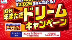 万代というスーパーでダントツキャンペーン、笑ろたもんキャンペーン、1000万円キャンペーン、ドリームキャンペーンなどを応募して当選したりと、色々です。